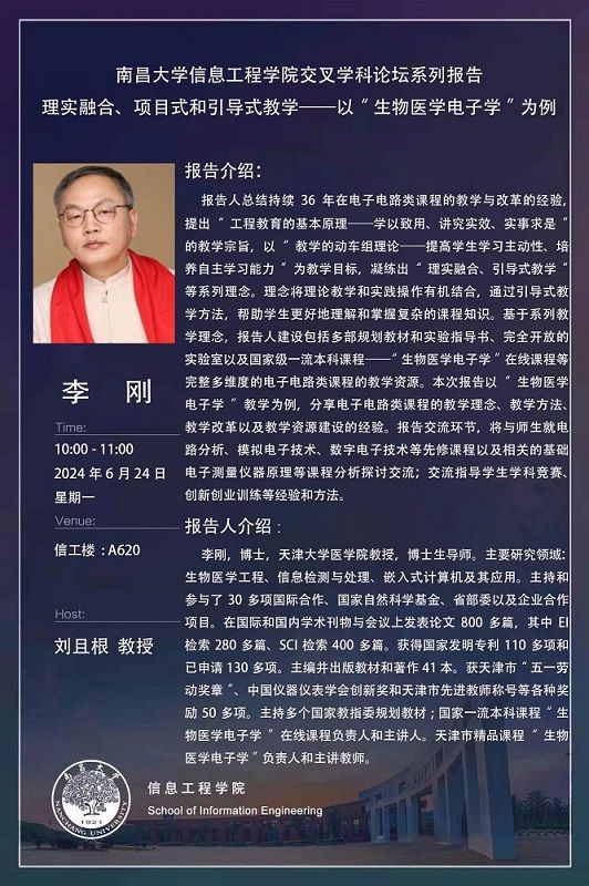 南昌大學信息工程學院交叉學科論壇系列報告:理實融合、項目式和引導式教學——以“生物醫學電子學”為例